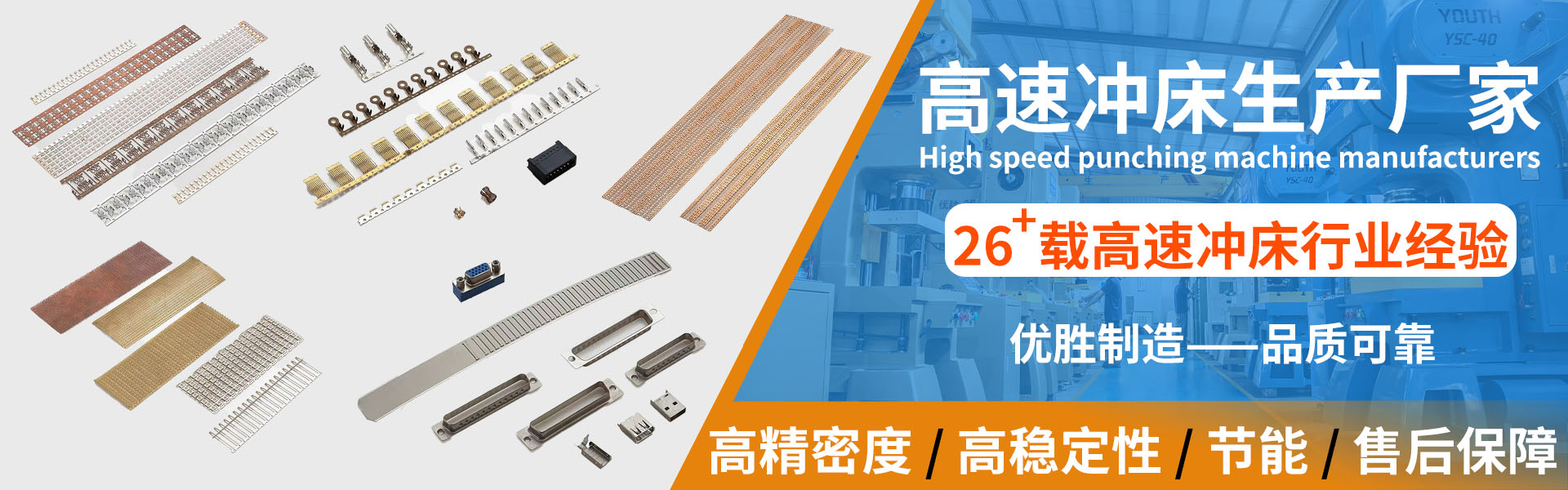 東莞市優(yōu)勝機械有限公司東莞市優(yōu)勝機械有限公司是集研發(fā)、制造、銷售、服務(wù)于一體的高速精密沖床專業(yè)廠商,公司擁有一支在高速沖床行業(yè)工作十余年的精英隊伍。公司主要生產(chǎn)C型25T、40T、60T龍門30T、35T、45T、65T等規(guī)格的高速沖床及周邊設(shè)備,產(chǎn)品精度達到JIS特級精度標準。公司產(chǎn)品廣泛應用于電子連接器、汽車連接器 、電機定轉(zhuǎn)子、變壓器EI片、半導體引線框架、五金彈片、LED支架等。